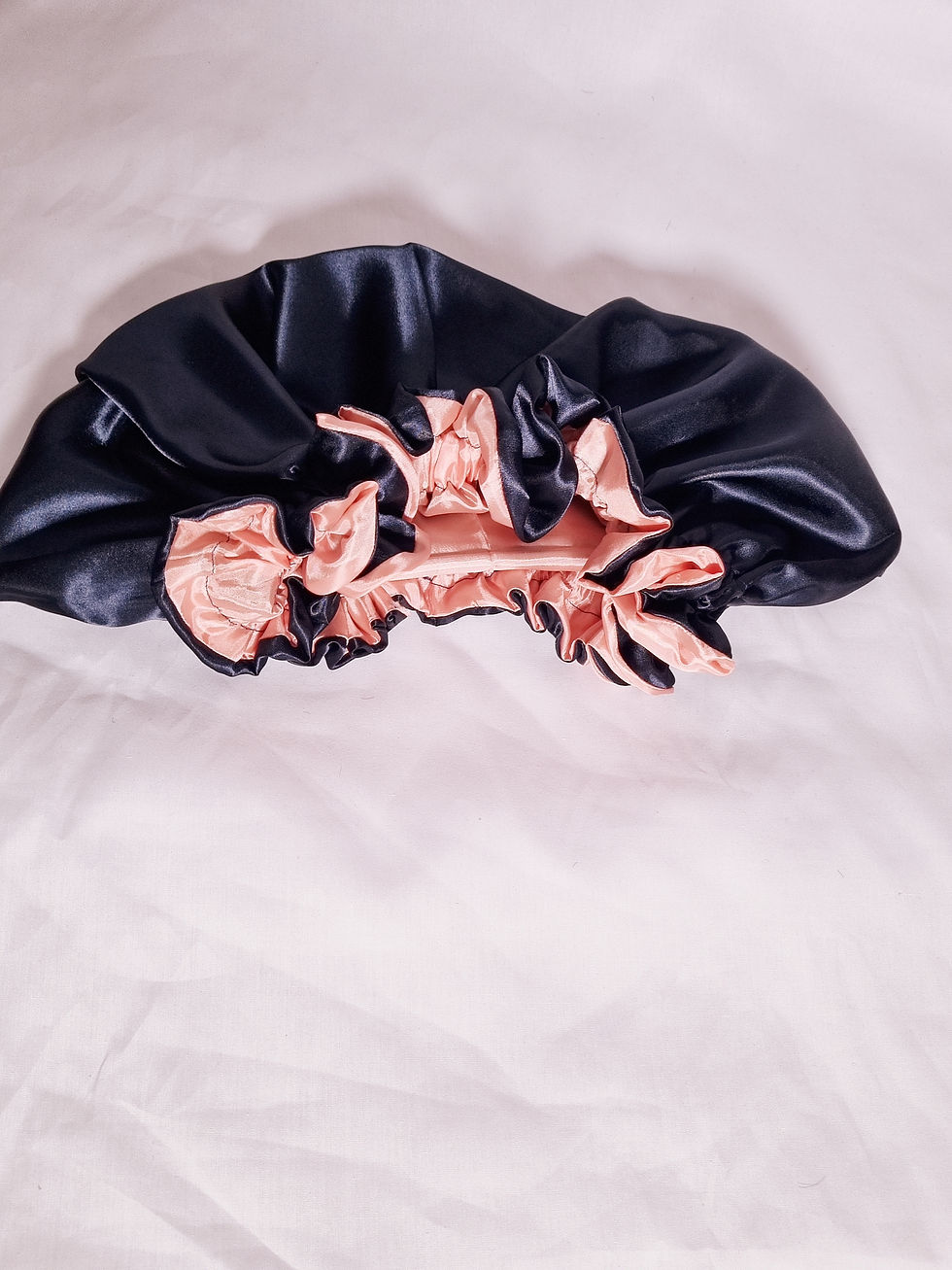 Dark Blue and Peach Reversible Satin Silk Hair Bonnet XL